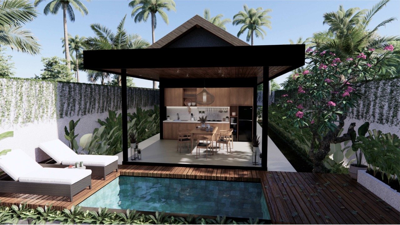 Introducing an upcoming tropical-style villa in Buduk, offering a rare opportunity to secure a long-term investment with a 50-year lease. Designed with a modern tropical concept, this charming villa features two spacious bedrooms, each with ensuite bathrooms, and an open-plan living and dining area that blends seamlessly with the outdoor environment. The layout emphasizes natural light, cross ventilation, and a relaxing tropical atmosphere ideal for both private living and short-term rentals.Located in a peaceful residential area of Buduk, the property offers convenient access to Pererenan and Canggu, where popular cafes, restaurants, and beaches are only a short drive away. The villa comes with a Pondok Wisata license, allowing for legal daily rentals and ensuring excellent potential for ROI and long-term income generation.